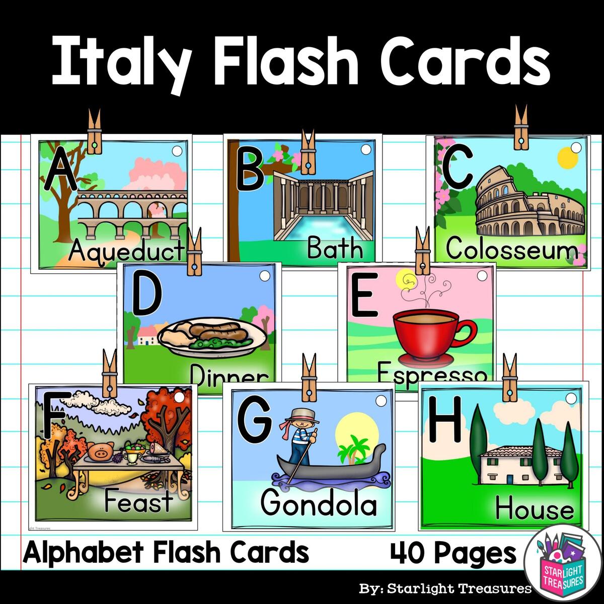 Alphabet Flash Cards For Early Readers Country Of Italy Made By Teachers